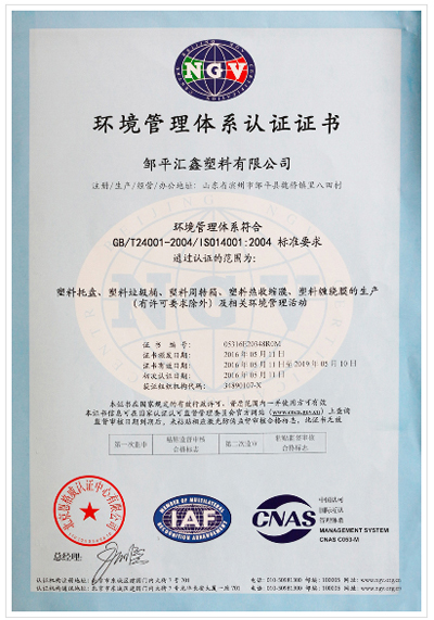 环境管理体系认证证书